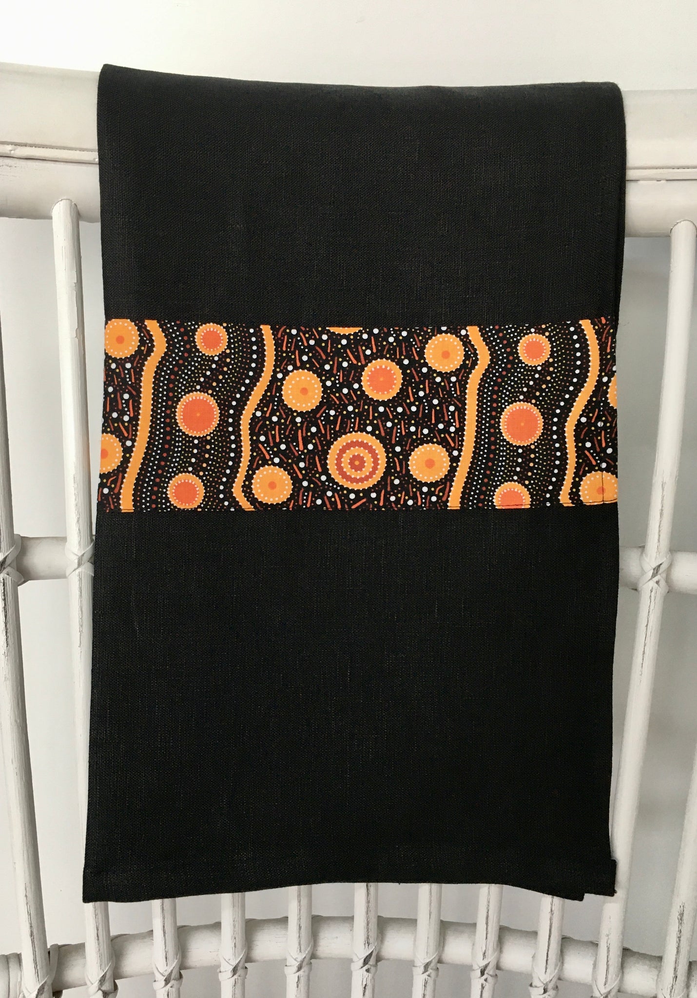 Inspired by the artwork of Australia's First People and in our traditional Australian Homestead style, our linen tea towels are a generous size and trimmed with authentic designs by some of Australia's best Indigenous Artists. Our fabrics are ethically sourced with sensitivity to our Indigenous People and most tea towels come with a copy of the story that inspired the artist.